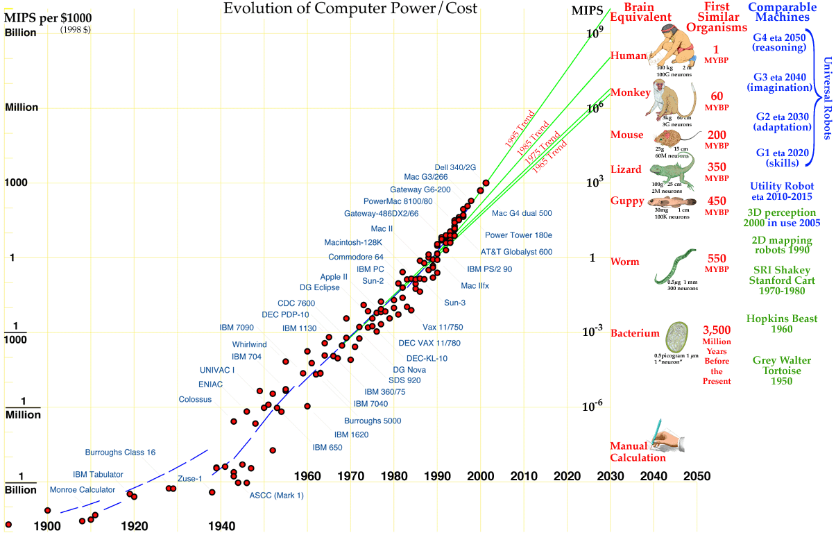 Eventually in time if that growth continues we will reach a singularity, which I suspect may be when humans merge with technology through cybernetics, augmented reality, and intelligence. Some people fear what may happen at this point, and although I admit some caution, such potential for new ways to communicate with what is fundamentally media excites me immensely.