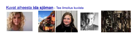 So now, who am I. Okay instantly I can find two pictures looking like me but that third one I wouldn’t say looks like me but I guess it could be me when I was young and before plastic surgery?! Searching for more images I can see that there is another Ida Sjöman living in Sweden.