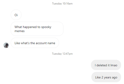 It was like that for a while, just for me. Until people decided they wanted to see more of my memes. I don’t know what led me to decide I wanted to grow the account, it probably was the kick I got from being praised and getting attention. (Sorry, didn’t mean for that to sound so depressing)